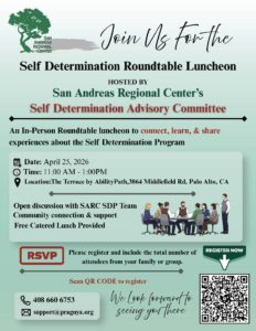 Join the San Andreas Regional Center for a Self Determination Luncheon. Free to attend and free lunch, but registration required.